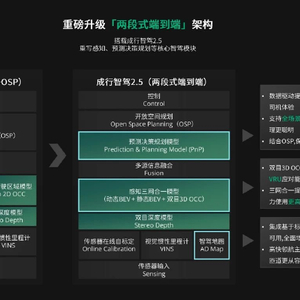 两者和端到端本身一样,都没有准确定义。“一段式”大概是从感知到最后执行,中间是一个模型,而模型内部数据流基本是“黑盒子”。两段式与之的区别在于,把感知和规控做成两个隔离的模型,中间嵌入人工数据接口。