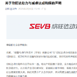 2月6日,根据官方公告,威睿电动汽车技术(宁波)有限公司(以下简称“威睿”)与欣旺达动力科技股份有限公司(以下简称“欣旺达动力”)已就此前因买卖合同执行产生的纠纷达成最终和解。本着对客户及行业负责的态度,双方通过友好协商签署了和解协议。