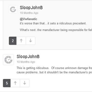 在AutoBolg关于速腾召回的新闻下,中国速腾车主义愤填膺的认为速腾设计存在缺陷,而美国车主则认为“这实在是太滑稽了。未知损伤如果没马上修复当然会造成问题,这怎么也不该是制造商的问题吧?”