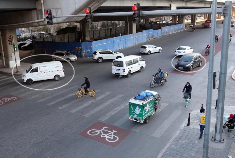 逆行车辆与正常行驶车辆交错行驶。