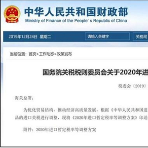 12月23日,国务院关税税则委员会发布公告称,为积极扩大进口,激发进口潜力,优化进口结构,自2020年1月1日起,我国将对850余项商品实施低于最惠国税率的进口暂定税率。
