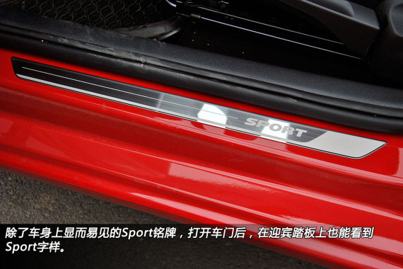 另外,这款测试用捷达Sportline的红色车身搭配熏黑的尾灯、黑色的后视镜和侧面那一道醒目的黑色装饰条,带给人强烈的视觉刺激。这样的搭配与大面积采用镀铬装饰的车型相比,并不逊色。