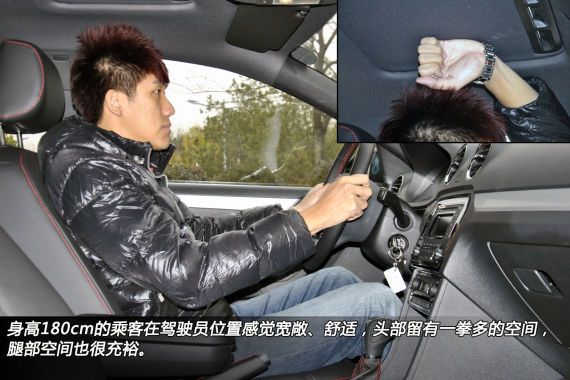 捷达Sportline的长、宽、高与普通版相同,分别为4487/1706/1470mm,轴距为2603mm,比老款捷达的2471mm长了不少。身高180cm的乘客在驾驶员位置感觉宽敞、舒适,头部留有一拳多的空间,而在后排则能享受到四指有余的头部空间和一拳加四指的腿部空间,这样的表现还是不错的。不过,由于横向宽度较窄,后排乘坐三人会比较辛苦。