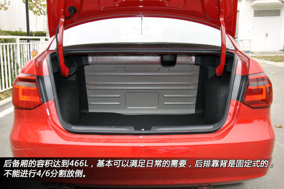后备厢的容积达到466L,基本可以满足日常的需要,后排靠背是固定式的,不能进行4/6分割放倒,影响了后备厢储物空间的进一步扩展,居家使用的扩展性受到限制。备胎为全尺寸,尾厢底板下还有储物格,算是好用。