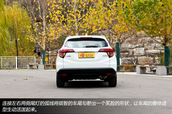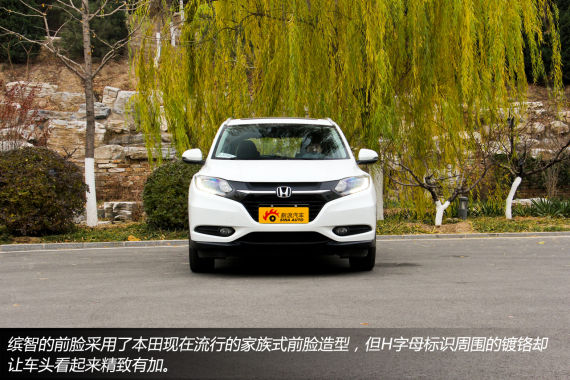 缤智的前脸采用了本田家族最新的飞翼式前脸,在广汽本田最近推出的几款车型上都有使用,黑色钢琴烤漆材质的中网看起来非常有质感,加上前保险杠的造型,让缤智看起来充满了雄性荷尔蒙的味道。