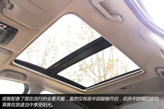 面积可观的全景天窗虽然仅有前半段能够开启,但是这并不妨碍车内的乘客享受阳光,尽管夏季全景天窗会让车内的温度在很短的时间就上升到让人感觉炎热的程度。