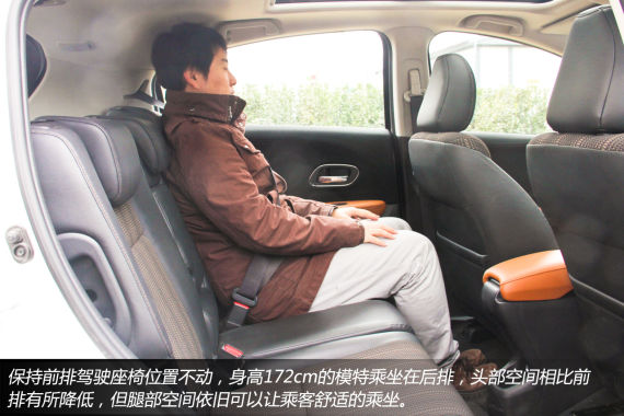 身高172cm的模特在调整成为自己最为舒适的坐姿之后,头部与车顶之间的距离超过一拳,尽管全景天窗会侵占一部分头部空间。由于中央扶手较高,所以前排同时乘坐两名成年乘客的话,也不会觉得过于拥挤,彼此还给对方留着一些舒适的空间。