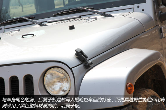 另外,喜欢牧马人的网友们一定清楚的知道牧马人撒哈拉和卢比肯之间的差异。也一定有钟情Jeep但却不甚了解撒哈拉和卢比肯之间差异的朋友,我在这里就啰嗦一下吧,首先,在外观上,撒哈拉的轮眉采用了与车身同色的设计,而卢比肯则采用了黑色的塑料轮眉,至于其他区别,请继续向下看。