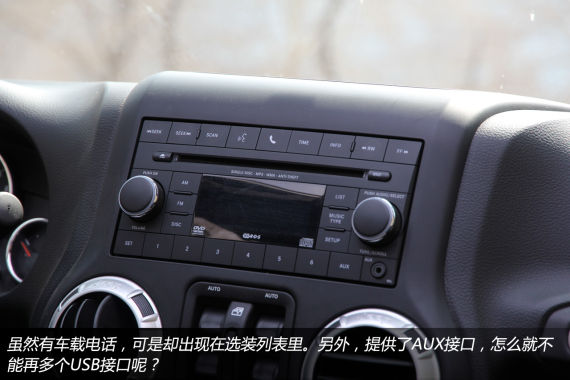 不过,牧马人的内饰在某些地方也确实太过于简单了,比如我们此次同行一起去老掌沟,两车三人,另外两个哥们儿开着舒适的大山猫在前面开路,而给我留下了足够的时间和空间去深刻体会真正的Jeep精神。一路上,我耳朵当中能听见的除了风噪、胎噪之外,就是手台里前车兄弟调侃我的声音以及他们车内的音乐声,而我却手里拿着优盘,一路都在期待要是车里能多个USB接口就好了。
