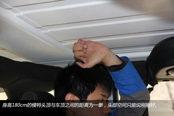 3.0L牧马人的后排乘坐空间非常有限,绝对谈不上舒服,身高180cm的模特保持驾驶座椅不动乘坐在后排,腿部距离前排座椅靠谱的空间只有一拳,头部与车顶之间的距离也是一拳,长时间乘坐的话会比较容易疲劳。