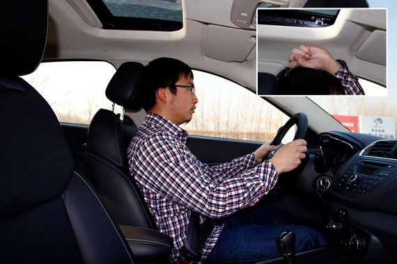 身高170cm的体验者坐进前排,头部剩余约1拳空间。