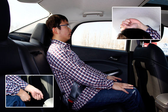保持前排驾驶座椅位置不变,后排头部空间剩余一拳,腿部为两拳有余。