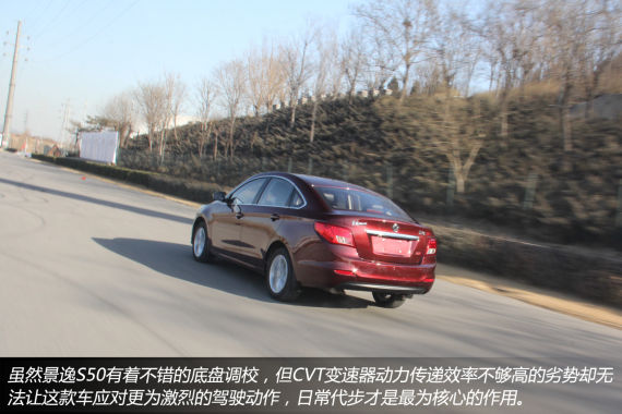 日常驾驶,景逸S50的所搭载的1.6L自然吸气发动机与CVT变速器的搭配组合能够拥有较为不错的平顺性,毕竟CVT变速器的传动效率有限,不可能像传统AT变速器那样较为直接的将动力输出至车轮,所以景逸S50更为适合代步,而非激烈的驾驶。