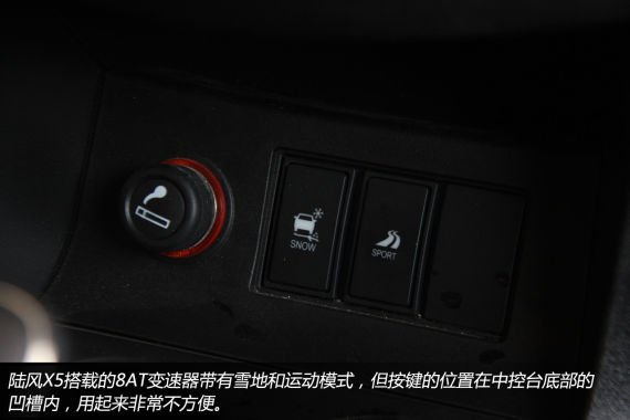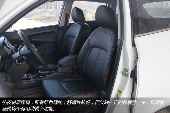 我们试驾的这辆顶配陆风X5装配了仿皮材质包裹的座椅,并配有红色缝线,具有不错的舒适度,但侧向包裹性稍显不足,值得一提的是陆风X5的顶配车型主、副驾驶两个座椅都配备了电动调节功能。