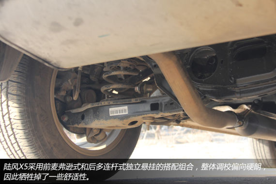 陆风X5采用了前麦弗逊式独立悬挂和后多连杆式独立悬挂的搭配组合,底盘的整体调校偏向硬朗,因此牺牲了一定的舒适性。对于一款主战场主要集中在城市路况的SUV车型来说,偏向硬朗的底盘调校对于驾驶者来说,能够增加一定的操控感,但对于车内的乘客来说,损失的就是舒适性了。