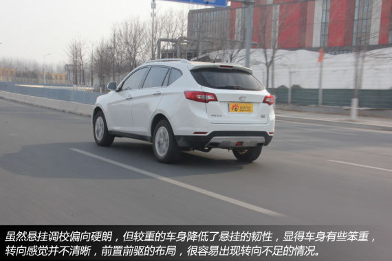 陆风X5的底盘整体调校偏向运动,硬朗的悬挂对于路面颠簸、起伏的过滤较为有限,偏长的悬挂行程在一定程度上降低了悬挂的韧性,显得车身过于笨重,所以陆风X5的转向并没有因为硬朗的悬挂而变得清晰,反而觉得有些模糊。