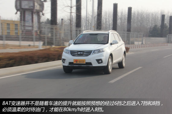 陆风X5的这台2.0T发动机,在转速接近3000rpm时,涡轮增压器启动会带来一个非常明显的扭矩爆发,让动力汹涌而出,能够提供一定的推背感,虽然谈不上动力强劲,但在城市或者高速路况下,这样的动力已经够用。而8AT变速器并不是随着车速的提升就能按照预想的经过6挡之后进入7挡和8挡,必须温柔的对待油门,才能在80km/h时进入8挡,脚下的动作稍稍有些粗鲁,就会从8挡直接降为6挡。