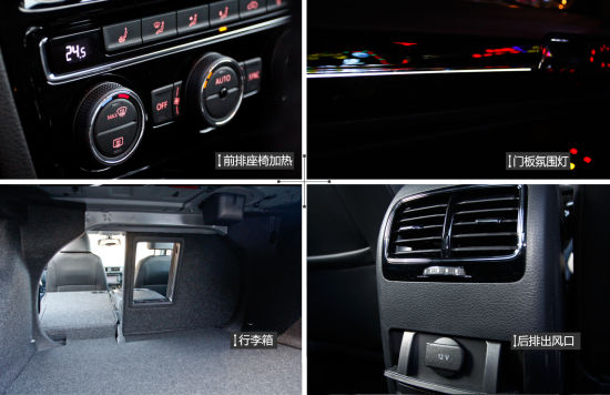 新速腾在配置上的提升也是显而易见的,不仅有启停系统和驾驶席的电动调节与可折叠外后视镜,前排的双区空调与座椅加热也是无意外的予以配备,此外后排出风口下方还设有12V电源插口,丰富了后排乘客的个性化需求。最新加入的氛围灯系统可在门板窗饰条下方看到一条白色灯带,而超过500L的行李箱也采用了后排座椅可放倒的功能以达到扩展容积的作用。