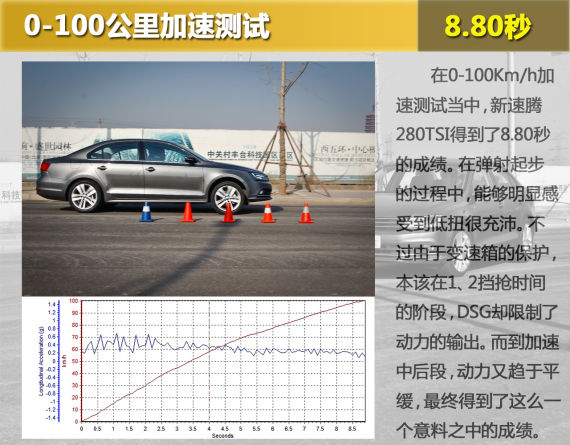一旦挂入S挡或者油门全开,新速腾会毫不犹豫的奋力前行,此时在起步与1挡换2挡时轮胎都会出现明显的打滑现象,不过电子稳定控制系统会及时的介入,而且当转速升至3500rpm后,澎湃的动力也会有些后劲儿不足。毕竟排量在那摆着,起码双离合特有的换挡的冲击感与小排量涡轮引擎的迟滞感基本是察觉不到了。