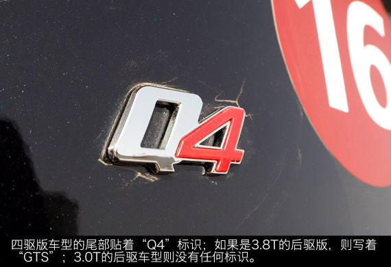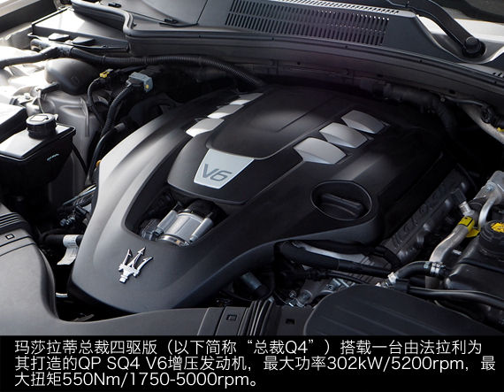 总裁Q4不光是将后驱升级为四驱,在动力上,虽然排量相同,但这台3.0T V6发动机比标准型上的V6发动机最大功率提升了59kW,最大扭矩提升了50Nm。这样一来,由普通3.0T到3.8T之间,又多了一个过渡性的动力选择,很多认为3.0T功率不够大,而3.8T价格又太高的人,有了新的选择。