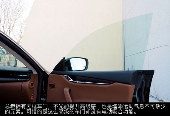 不得不说,让意大利人做豪华车,就别指望车能100%的沉稳、大气。在玛莎拉蒂总裁Q4身上,我们看到更多的是对驾驶者的“偏心”。后排的配置相当基础,只有双温区空调、电动遮阳帘等功能,更多的则需要通过选配得到。通过试驾体验不难发现,总裁Q4仍然是一台“驾驶者之车”,它的细分市场其实与ABB的顶级豪车完全不同。对于那些事业成功、有家有室又难抑内心深处的激情的人们,总裁Q4以及总裁车系都是很好的选择。最后,我想通过试驾中和副驾的一段对话来结束这篇文章: