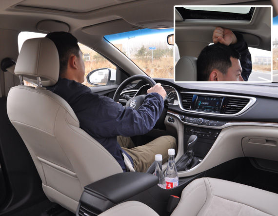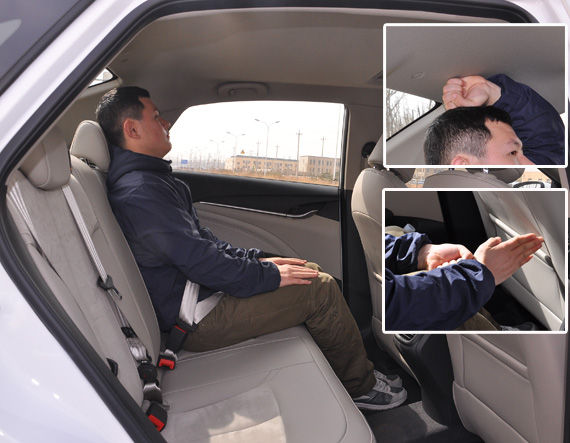体验者身高173cm,将座椅调整到合适位置,头部空间剩余1拳左右。将前排座椅位置保持不变,体验者坐到后排,头部空间剩余剩余一拳,腿部空间剩余一拳一掌的距离,这样的空间表现可以和更高级别的车型一较高下。后排中央凸起并不十分明显,加上后排宽裕的腿部空间,所以中间乘客的乘坐舒适性还是比较能得到保证。