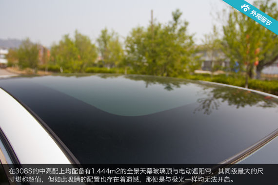 值得表扬的是,308S的内装较为精细,但凡能够触摸到的地方几乎都有软性搪塑包裹,直接提升了乘坐的舒适性。而诸如门边以及天窗上沿,308S都很厚道的进行了包边处理,在细微之处见工艺水平。
