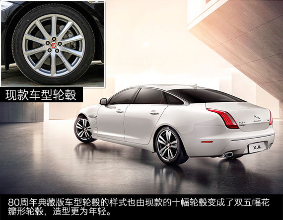 在外观上,80周年典藏版与现款车型的差别不大,主要变化集中在尾部标识和轮毂。在尾部的XJL下方增加80周年的专属标识,身份辨认更加清晰。而轮毂也由现在的多幅样式变成了双五幅花瓣形设计,看上去比现款车型更有运动感。