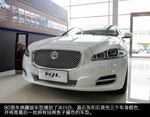 XJL 80周年典藏版还有着更为丰富的外观颜色,推出了三个特别配色:冰川白、晶石灰和石英色。另外,XJL 80周年典藏版也将是最后一批采用经典鱼子酱色的车型,这也或多或少的增加了它的收藏价值。