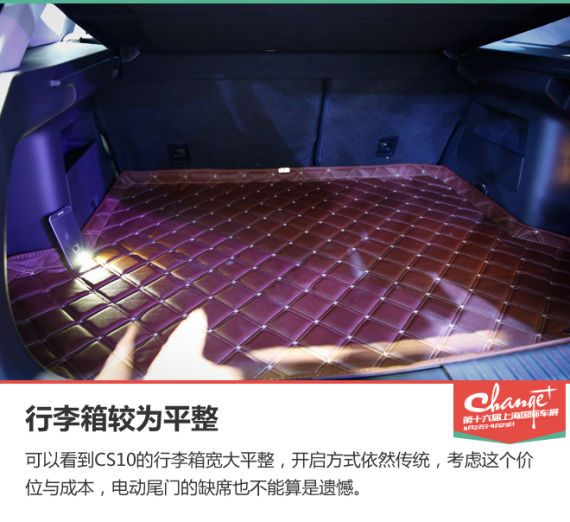 可以说CS10最大的卖点就是在于配置上的全面与空间上的出色表现,在于同级车型比拼的时候,可以保证设计上能够不落下风,空间上高人一等。当然,如果能够控制下新车用料材质上的气味,那就更好了。