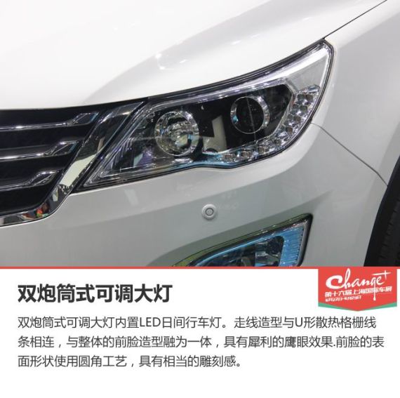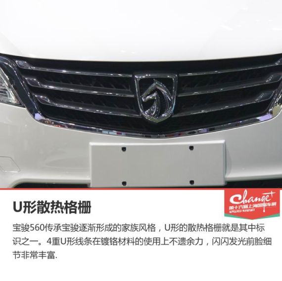 外观方面,宝骏560延用了家族式脸谱设计,“V”型进气格栅加入蜂窝式网格设计,与霸气的倒“U”型大网格格栅相互呼应,使前脸极富冲击力。前大灯采用了不规则造型,内部使用了双透镜结构,并配有LED灯带,看起来更为时尚。雾灯框为三角造型,下方还配有LED日间行车灯。
