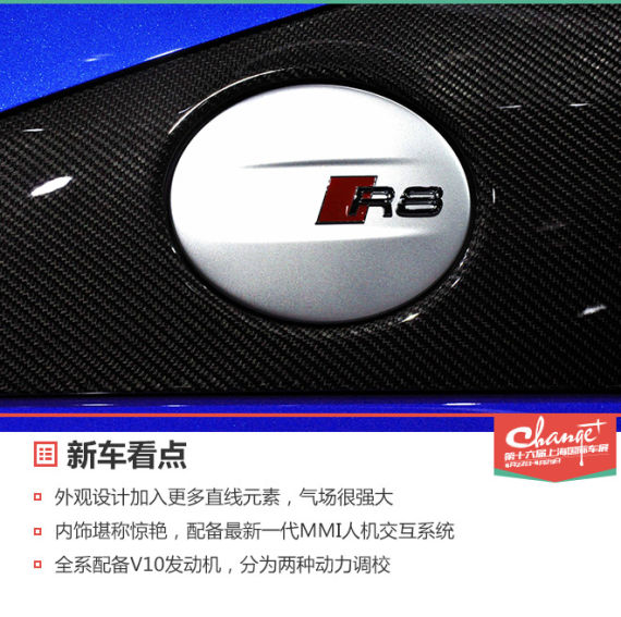 全新奥迪R8于本届上海车展迎来亚洲地区首发。虽然新R8的整体造型与上代车型很像,但在细节方面设计体现了其作为一款超跑应具备的攻击性。革新的内饰设计与新一代MMI系统所组成的座舱可以说甩上代车型N条街也不足为过。
