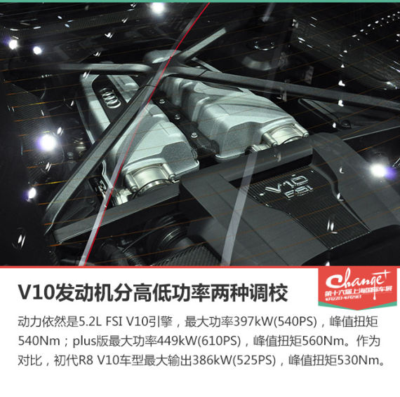 新的V10发动机引入了直喷和闭缸(COD)技术,可以在巡航时关闭一半气缸。在新技术帮助下,新R8的V10车型百公里油耗达到12.4升,相当于现款V8发动机的水准,这样的油耗似乎对于新R8还算可以接受的数字。