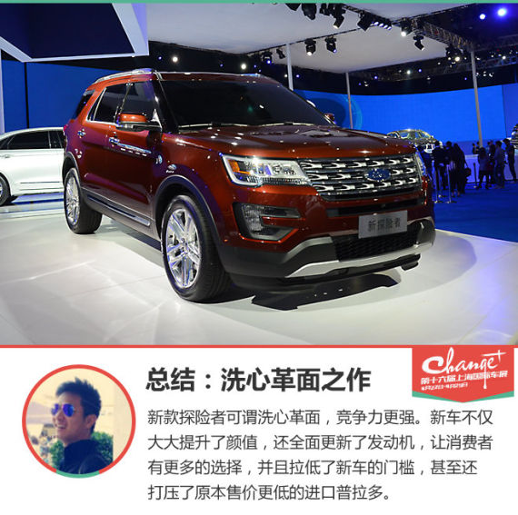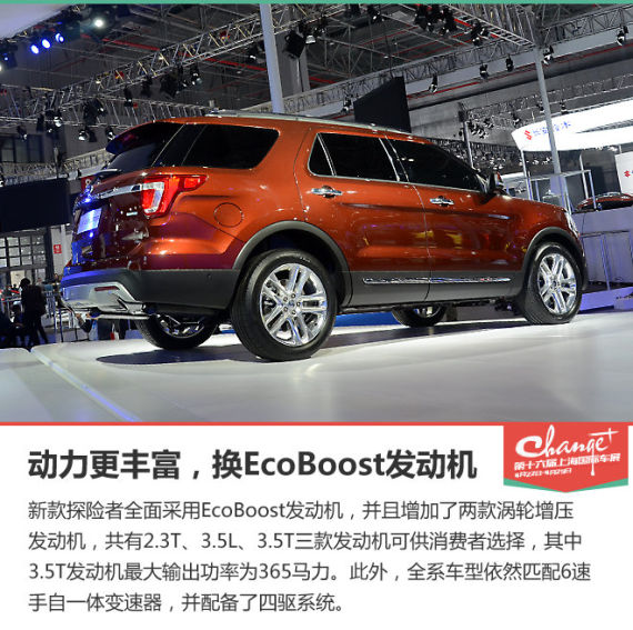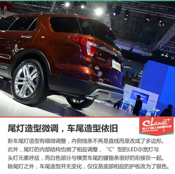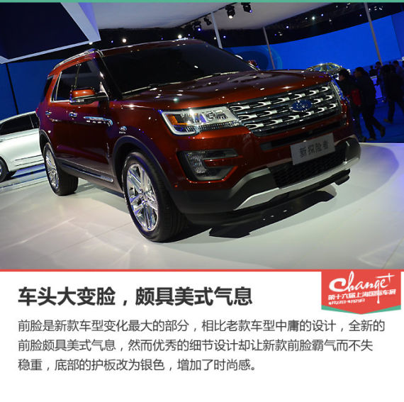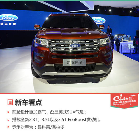 福特在本届上海车展中发布了新款探险者,该车是中期改款车型,主要是对外观进行了调整,并采用了全新的发动机。