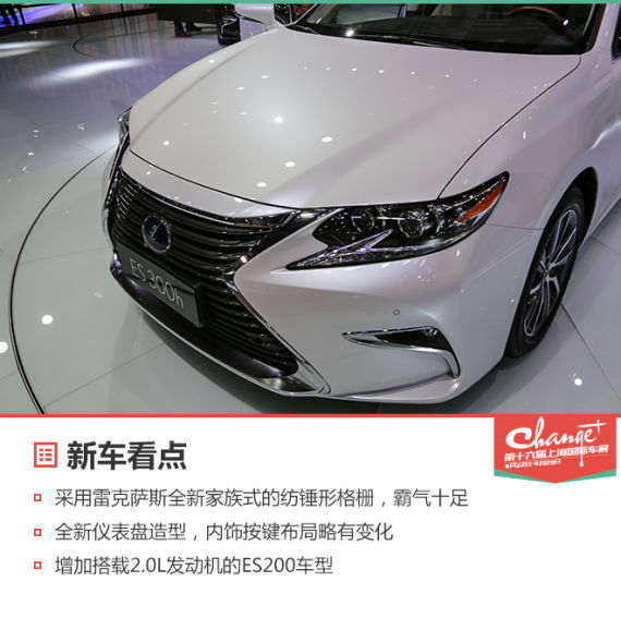 作为雷克萨斯在华的主力中级车型之一,ES一直受到很高的关注,在上海车展上进行雷克萨斯新ES的全球首发足以说明它的地位。相比2014款车型,新ES在外观和内饰上都做出了部分改动,以适应雷克萨斯的家族战略和潮流趋势。