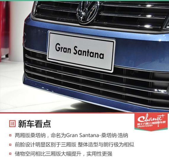 桑塔纳作为国内市场最早的合资车型之一,在过去的30余年承载了一代人的汽车记忆,以皮实可靠的品质有着非常不错的市场口碑。全新桑塔纳自2012年推出以来,月销量长期处在小型车排行榜前列位置,而上海大众并不甘于此,在这次上海车展上,上海大众发布了桑塔纳两厢版车型,并将其命名为“桑塔纳·浩纳”,英文名为“Gran Santana”,进一步丰富了产品阵容。