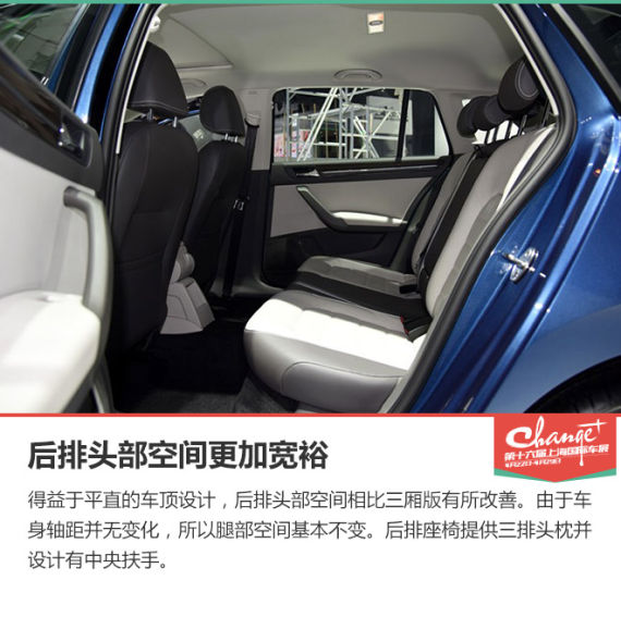 车内乘坐空间宽裕,尤其体现在后排头部,这要归功于平直的车顶设计。后排座椅放倒后,后备箱储物空间客观,同时座椅支持4/6比例返到,使用很灵活。