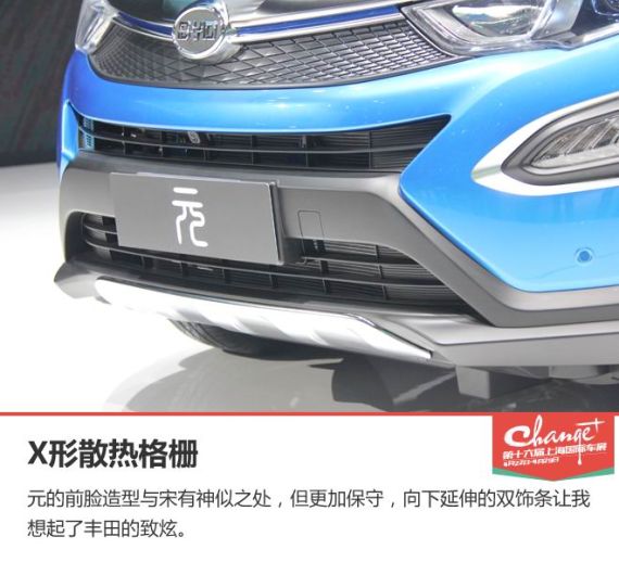 比亚迪元依旧采用了镀铬式进气格栅设计,这也是比亚迪最新家族式的惯用设计手法。与之连为一体的则是不规则的前大灯设计,显得十分灵动。前保险杠方面,比亚迪元则和比亚迪S3有些相似,设计看似复杂,但并没有很累赘的感觉,同样显得很动感。