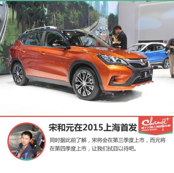 比亚迪宋在2015上海车展首次发布。同时据此前了解,宋将会在第三季度上市,而元将在第四季度上市。比亚迪宋定位于紧凑型SUV ,其车身尺寸长宽高分别为4565/1830/1720mm,轴距为2660mm。大体与丰田RAV4相当,且看起来要更大气一些。