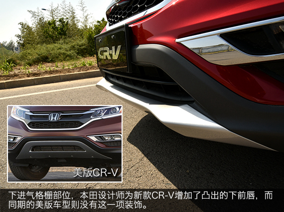 这是一种鱼和熊掌的选择,增加了银色下前唇后,很好地平衡了前脸的设计重心,同时视觉冲击力更强,侧面看上去甚至有些像獠牙。不过美版车型那种向上收起并包裹住防刮护板的做法则能得到相对更大的接近角。设计师优先照顾视觉感受,想必也是知道没人会拿CR-V来越野吧。