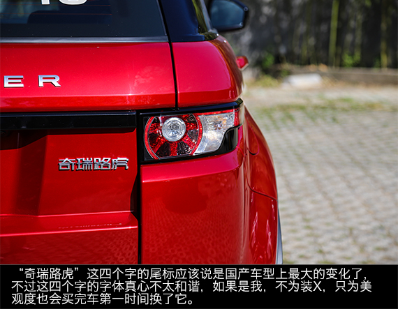 一群人围着它相面一样的仔细看了半天也没找出什么大的不一样,只是尾部的标识变成了奇瑞路虎,由此可见,奇瑞对极光的还原度基本做到了百分之百,换了尾标的话,进口版和国产版简直“傻傻分不清楚”。不过难得一款进入国产没有改变的车,奇瑞的中国制造还是可以肯定一下的。