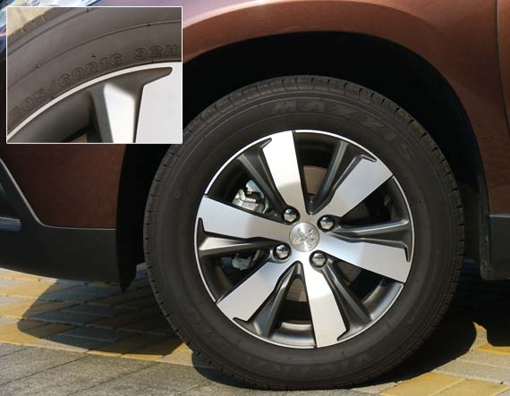 轮毂的样式非常别致,采用的是金属灰和亮银双色的轮毂,小巧的车身与精致的轮毂匹配的非常和谐。轮胎采用的是玛吉斯品牌VICTRA 510系列,规格为205/60 R16,这个轮胎在国内其他合资车型上也有配备,比较偏向于公路舒适性,网店售价在450元左右。