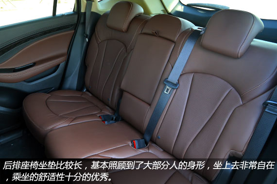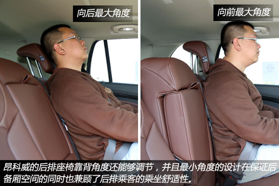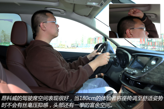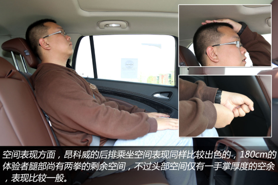 前文提到,相比途观和翼虎等主要竞争对手,昂科威在车身尺寸方面有着较为明显的优势,而其目标也是要奠定昂科威车型在前后排的头部、肩部和膝部空间,乃至行李箱空间都要全面超越竞争对手。前排座椅的造型偏向舒适为主,真皮材质的质感不错,座椅不会太过偏软,承托力度适中,而且两侧的包裹和支撑性都很好,除了常规的电动调节以外,坐垫腿部支撑的长度还能通过手动调节,这项配置值得称赞。昂科威的驾驶席空间表现很好,当180cm的体验者将座椅调至舒适姿势时不会有丝毫压抑感,头部还有一拳的富余空间。