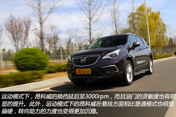 昂科威提供了标准、运动、旅行、越野四种驾驶模式,其中旅行模式是专门针对高速公路长途驾驶而使用的模式,当处于该模式下,昂科威的悬架和转向助力更加偏向舒适,并且根据官方信息其在燃油经济性上也更加优秀。而当车辆处于越野模式时,昂科威的四驱系统会更加积极的介入使车辆四轮获得更加合理的动力分配,以提升车辆整体的通过性能。相比越野和旅行模式,运动模式下的昂科威变化最为明显,换挡延后至3000rpm,而且油门的灵敏度也有明显的提升。此外,运动模式下的昂科威在悬挂方面相比普通模式也明显偏硬,转向助力的力度也变得更加沉稳,以便于高速行驶时可以更加稳重的转向。