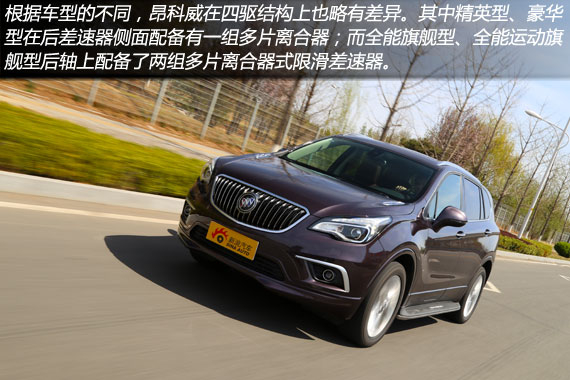 虽然昂科威是一款偏向舒适性的城市SUV,但是其全系配备了四驱系统,让其在通过性能方面也有着不俗的表现。不过根据车型的不同,昂科威在四驱结构上也略有差异。其中低配和中低配车型(精英型、豪华型)在后差速器侧面配备有一组多片离合器,当锁定动力输出是,前后轴动力分配比为50:50。而中高配车型和顶配车型(全能旗舰型、全能运动旗舰型)后轴上配备了两组多片离合器式限滑差速器,其可以根据不同的需求改变后面左右两个轮的动力输出。当前后轴之间的动力分为50:50,此时,后面的左右车轮可以实现100:0或者0:100的动力输出。