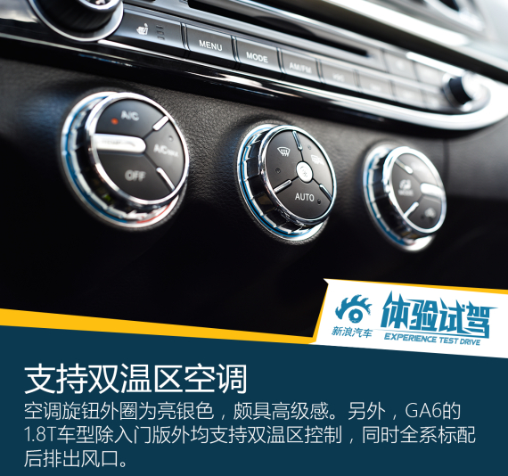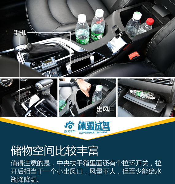 GA6车内的储物空间算是比较丰富的,而且单个储物槽的容积也不小,中央扶手箱装下两三瓶小矿泉水没有问题,内部小出风口的设计能看出工程师还是很细心的。