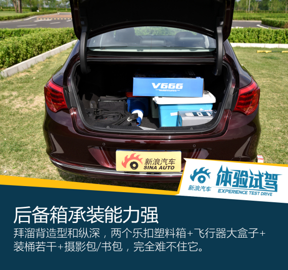 虽然后排座椅不支持放倒,500L的后备箱参数也不怎么好看,但数据终归是苍白的,规整的侧面外加高度,让GA6的后备箱相当灵活。要知道某些三厢车,你是别想在乐扣塑料箱上再放个箱子的。
