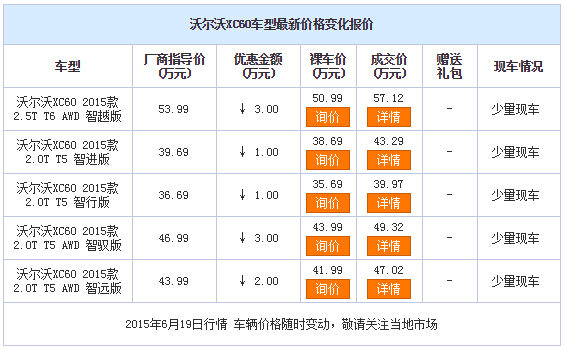 新浪银川汽车讯 近日,编辑从宁夏佳丰沃尔沃4S店了解到,沃尔沃XC60 (配置|询价)现车销售,颜色可选,目前购车部分车型可优惠3.00万元,感兴趣的朋友可以到店咨询购买。