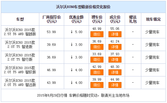 新浪银川汽车讯 近日,编辑从宁夏佳丰沃尔沃4S店了解到,沃尔沃XC60 (配置|询价)现车销售,颜色可选,目前购车部分车型可优惠5.00万元,感兴趣的朋友可以到店咨询购买。