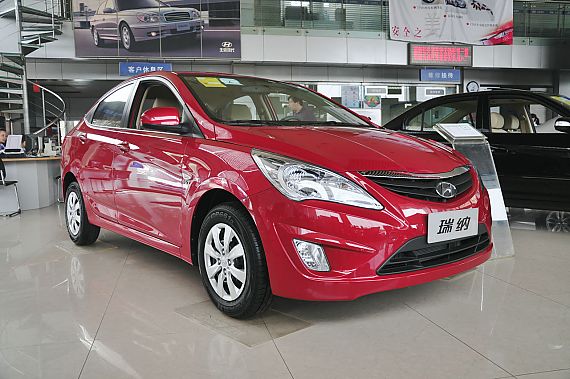 车型介绍:瑞纳是北京现代以流体雕塑为理念自主设计的一款新A0级轿车。外观方面延续了现代汽车流畅、饱满圆润的造型。V型进气格栅设计使整款车型显得更加硬朗、更加凶猛。内饰方面,北京现代VERNA瑞纳的中控台设计依然延续了韩国车型的简洁大方、操控顺手的经典布局。显示屏与音响等各项控件对称地分布在中控面板上,内饰的包覆材料材质柔软而舒适。动力方面瑞纳搭载了1.4Lγ-CVVT发动机和1.6Lγ-CVVT发动机,最大功率分别为78.7KW和90.4KW,配以5速手动和4速自动变速器。